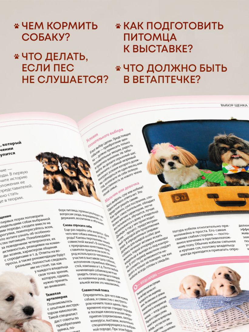 Красочные иллюстрации и фотографии помогут вам познакомиться с представителями популярных пород, а полезная информация поможет позаботиться о своем питомце в любом его возрасте и воспитать себе хорошего и верного друга.