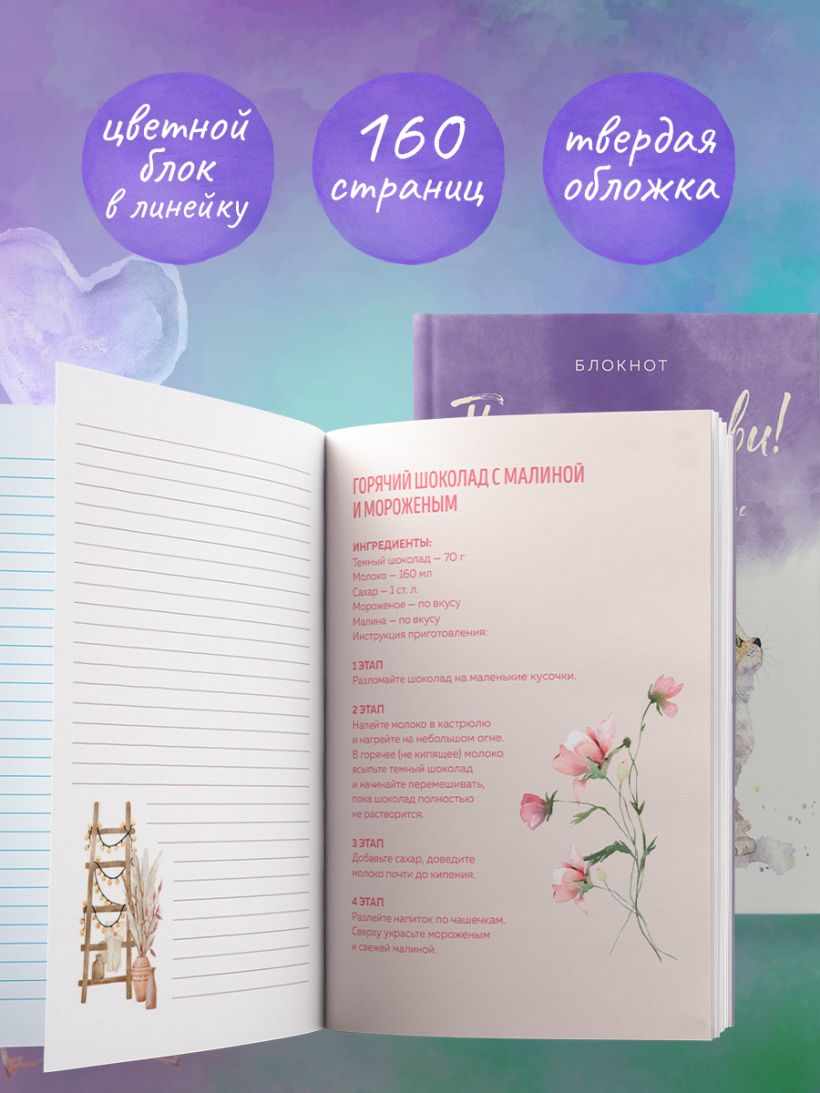 Блокнот станет отличным подарком без повода или на какой-либо праздник, например, на 14 февраля, 8 марта, день рождения, Новый год.