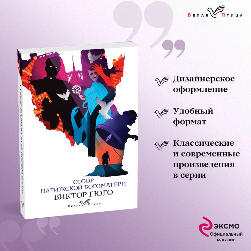Колоритное изображение Парижа с высоты птичьего полета и пронзительная история любви под сводами готического собора нашли отражение во множестве экранизаций и инсценировок.