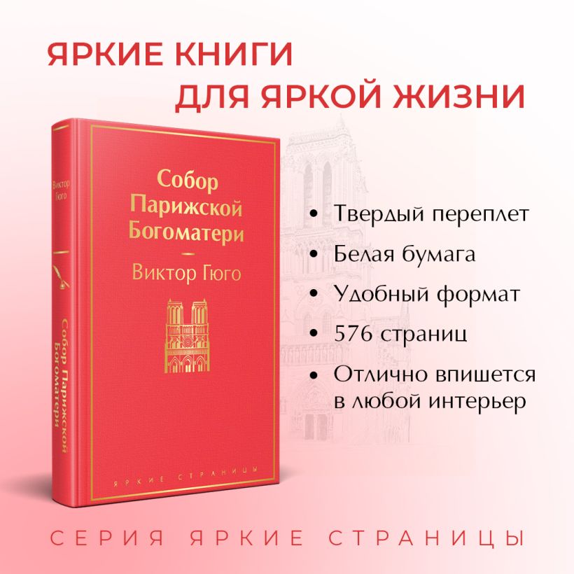 Знаменитый исторический роман Виктора Гюго «Собор Парижской Богоматери». Именно благодаря его появлению мы можем любоваться одним из самых красивых готических соборов в мире — в самом центре Парижа. Гюго привлек внимание к собору своим произведением, причем сделал это намеренно, так как Нотр-Дам собирались снести. Автор и не скрывал, что главный герой его романа — сам собор Парижской Богоматери. Под его готическими сводами будет разворачиваться драматичная история любви — одна из самых известных и роковых в истории литературы. Интриги и неожиданные повороты, любовь и ревность, месть и вероломство, смерть на эшафоте и гибель от невозможности пережить утрату любимой — на фоне средневековой Франции с ее блеском и ужасами.