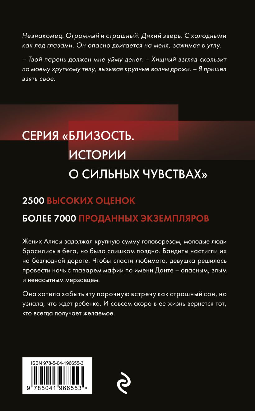 Жених Алисы задолжал крупную сумму головорезам, молодые люди бросились в бега, но было слишком поздно. Бандиты настигли их на безлюдной дороге. Чтобы спасти любимого, девушка решилась провести ночь с главарем мафии по имени Данте — опасным, злым и ненасытным мерзавцем.