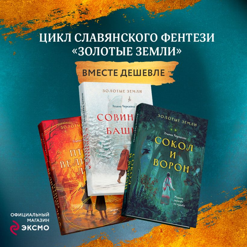 В компелект вошли книги цикла Черкасовой Ульяны "Золотые Земли": "Сокол и ворон", "Совиная башня", "Птицы великого леса".