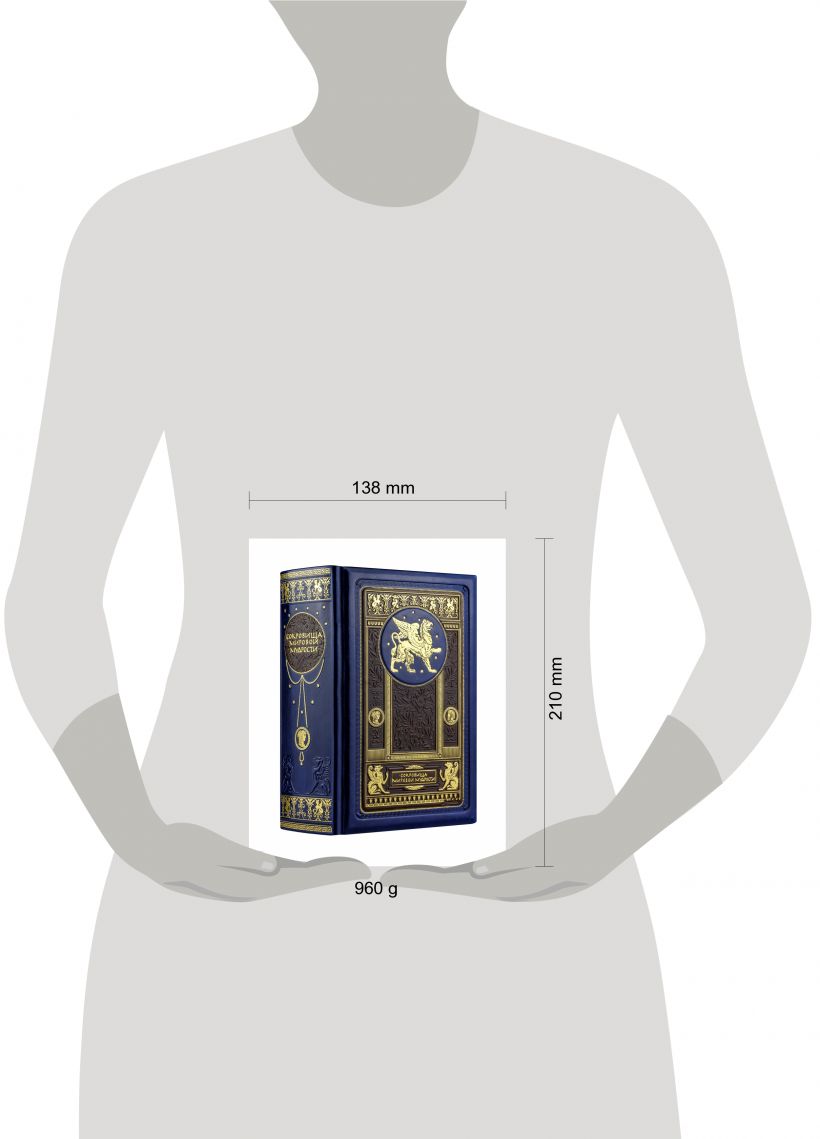 Натуральная гладкая синяя кожа инкрустированного переплета украшена глубоким рельефным и золотым тиснением высокого качества. Старинная технология мозаичной инкрустации владельческих переплетов воспроизведена в точности в соответствии с описаниями старых мастеров. Врезки из коричневой кожи на передней сторонке и корешке делают переплет особым, уникальным, а трудоемкость технологии позволяет изготовить лишь ограниченное количество экземпляров. Красочный сертификат, подтверждающий уникальность издания вложен в экземпляр и пронумерован. Бумага в книге легкая, матовая, что обеспечивает комфортное чтение даже длительное время. Более ста редких графических иллюстраций и фотографий в тексте. Форзацы из дизайнерской тонированной бумаги. Трехсторонний окрашенный в цвет переплёта обрез с выпуклым рельефным растительным рисунком покрыт золотом. Золотистые лента для закладывания страниц и каптал, скрепляющий верх и низ объемного тома, изготовлены из шелка.