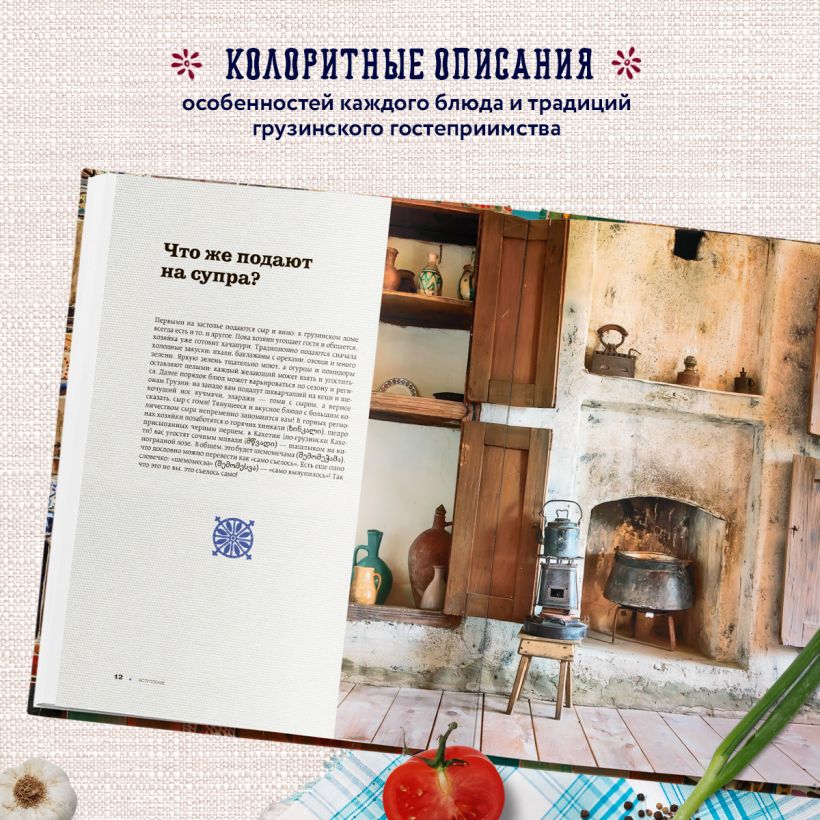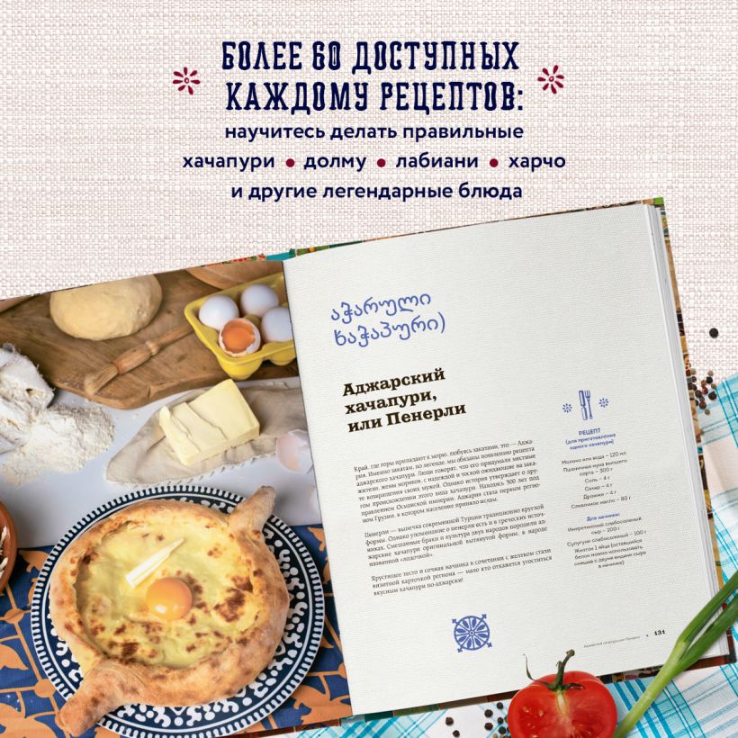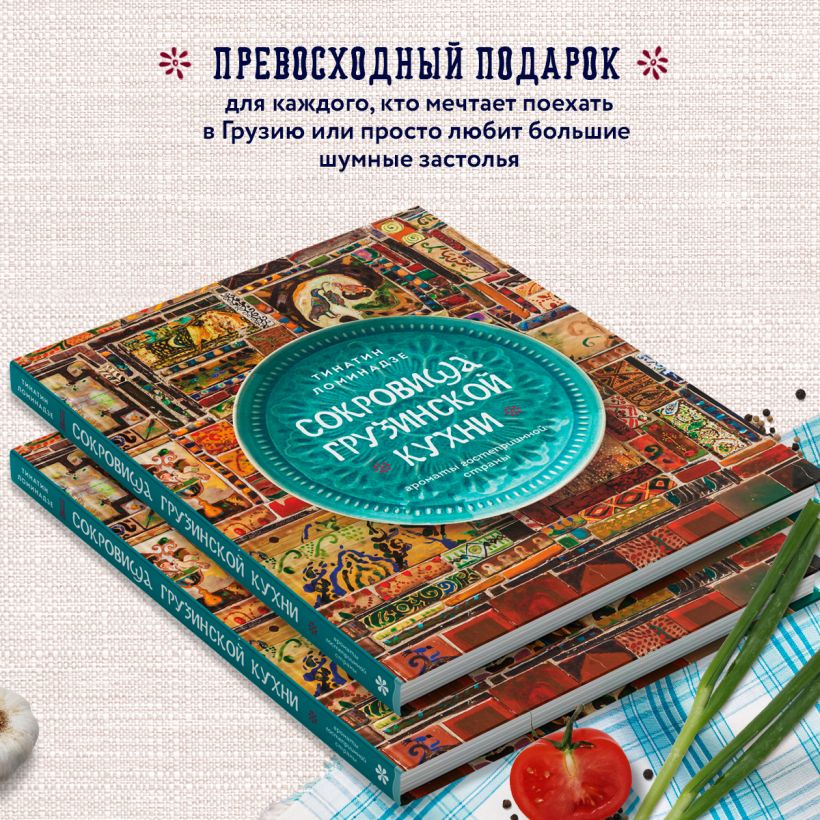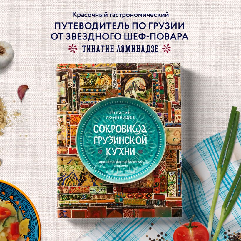 Вместе с Тинатин приготовьте знакомые вам хачапури, чахохбили или харчо. Или отдайте предпочтение салату ацецили, мужуже, чаве и летней талме. Изучайте, пробуйте, экспериментируйте, ведь в этой книге собраны лучшие рецепты Грузии.
