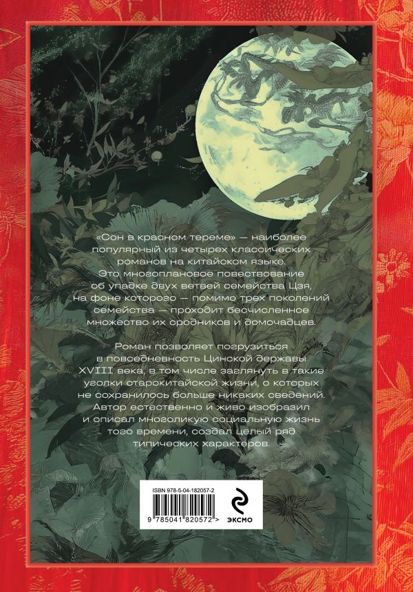 «Сон в красном тереме» — наиболее популярный из четырёх классических романов на китайском языке. Это многоплановое повествование об упадке двух ветвей семейства Цзя, на фоне которого — помимо трёх поколений семейства — проходит бесчисленное множество их сродников и домочадцев.