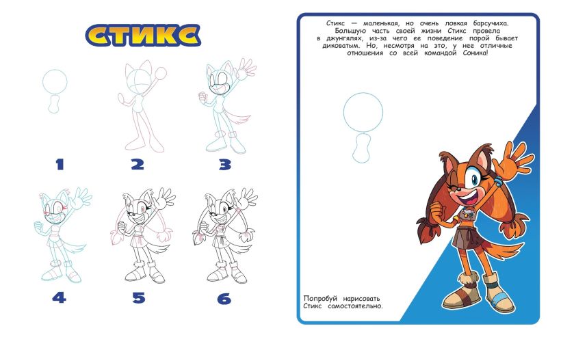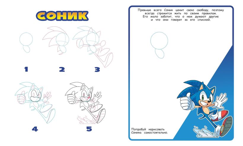 Если тебе хочется провести время в компании легендарных супергероев, то эта книга точно для тебя! Научись рисовать Соника, самого быстрого и самого популярного Ежа во всей Вселенной, и всех его друзей. Простые пошаговые инструкции помогут тебе стать настоящим иллюстратором! Благодаря небольшому формату книгу удобно брать с собой в дорогу — когда тебе захочется порисовать, она всегда будет под рукой! А если ты не знаешь, что подарить другу, который, как и ты, обожает Соника, то эта яркая раскраска-самоучитель станет крутым подарком на день рождения и любой другой праздник.