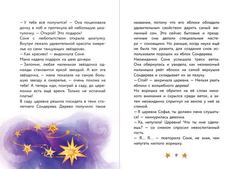 Хочешь узнать ещё больше о приключениях царевны Сони? Тогда открывай эту книгу — в ней девочке предстоит отправиться к Радужному водопаду, чтобы спасти своё царство от вечного сна. В компании кошки Матрёши и нового друга Миши Соня преодолеет любые препятствия!
