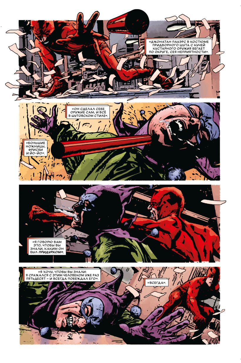 Лихо закрученный сюжет с неожиданной развязкой, безумно красивый рисунок, жестокие схватки, бесконечные ловушки и обманы, целая россыпь врагов и друзей Мэтта Мёрдока, готовых вступить в схватку за будущие Сорвиголовы, всё это ждёт вас на страницах заключительного тома одной из лучших серий о Дьяволе Адской кухни!