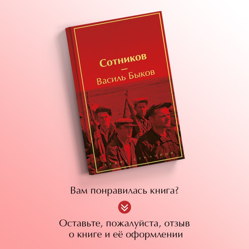 В книгу вошло две его повести. Герои «Сотникова» — двое участников партизанского отряда, отправившись на поиски провизии, они попадают в плен к немецким полицаям. Раненного, но несгибаемого Сотникова приговаривают к смерти, а привести казнь в исполнение приказывают его товарищу Рыбаку.