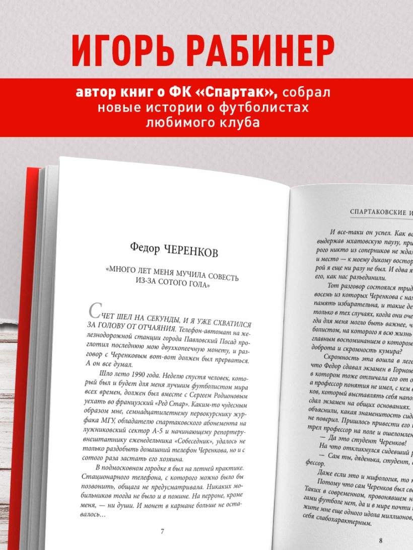 «Спартак» и его герои, представленные в этой книге, — сами по себе тоже искусство. Потому что только оно, искусство, может уже целый век вызывать у людей такую бурю эмоций, которые хочется не только выплескивать в крике на стадионах, но и выражать в стихах, песнях, фильмах, наконец, книгах.