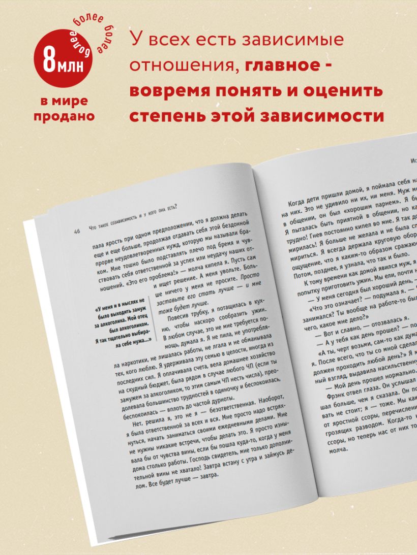 Международный бестселлер. Признана лучшей книгой о созависимости. Получила массу наград. Впервые вышла в 1986 году, с тех пор выдержала более 25 изданий и стабильно держится на первых местах в рейтингах книг из серии популярной психологии и психотерапии. При всей серьезности темы написана легко и очень увлекательно.