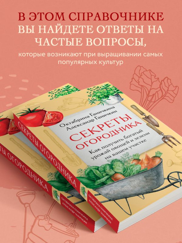 Понятный и пошаговый справочник с главными секретами огородника от ведущих отечественных специалистов в области сельского хозяйства, Октябрины и Александра Ганичкиных, поможет даже новичку понять главные принципы, которыми надо руководствоваться, чтобы получить богатый урожай даже с небольшого участка. Познакомьтесь с тонкостями агротехники овощных и зеленных культур, рекомендуемыми схемами и сроками посадок, правилами ухода, полива и подкормок, которые позволят сэкономить время и силы на исправление ошибок! Даже новички, руководствуясь подробными и понятными рекомендациями автора, смогут порадовать себя и близких богатым урожаем помидоров и огурцов, баклажана и перца, капусты, моркови, картофеля, свеклы, кукурузы, лука и зелени, чеснока и других любимых культур каждого дачника.