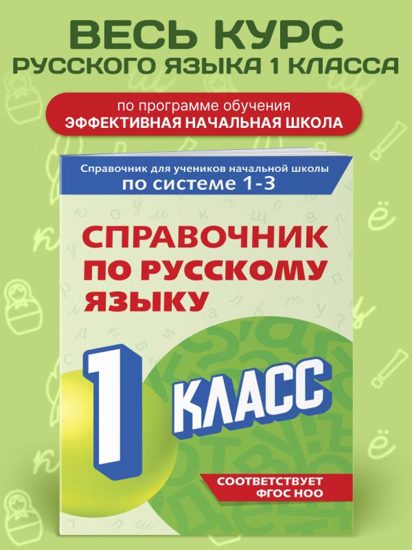 Справочник предназначен для младших школьников, обучающихся по ускоренной трёхлетней программе или по индивидуальному плану, а также для преподавателей, работающих по программе «Эффективная начальная школа». Главное требование к справочникам для учеников начальных классов — краткое и понятное изложение учебного материала. В данном пособии предельно доступно, в виде таблиц, схем, правил и примеров их применения, изложен весь курс русского языка за 1 класс по программе трёхлетнего обучения. Такая подача материала позволяет быстро найти нужную учебную информацию, основательно повторить и надёжно запомнить её. Современное и удобное в использовании пособие разработано в полном соответствии с требованиями ФГОС начального общего образования.