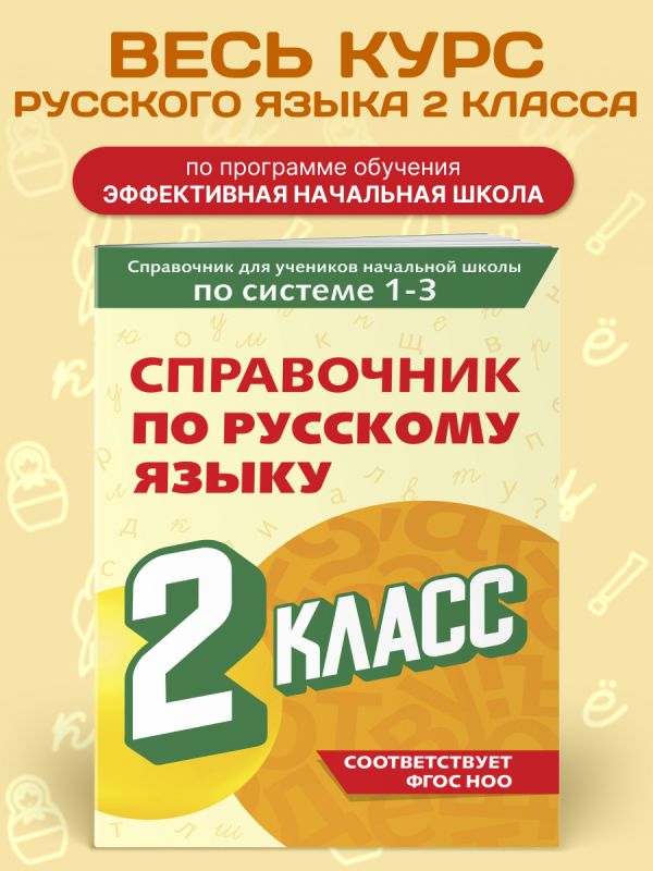Справочник предназначен для младших школьников, обучающихся по ускоренной трёхлетней программе или по индивидуальному плану, а также для преподавателей, работающих по программе «Эффективная начальная школа». Главное требование к справочникам для учеников начальных классов — краткое и понятное изложение учебного материала. В данном пособии предельно доступно, в виде таблиц, схем, правил и примеров их применения, изложен весь курс русского языка за 2 класс по программе трёхлетнего обучения. Такая подача материала позволяет быстро найти нужную учебную информацию, основательно повторить и надёжно запомнить её. Современное и удобное в использовании пособие разработано в полном соответствии с требованиями ФГОС начального общего образования.