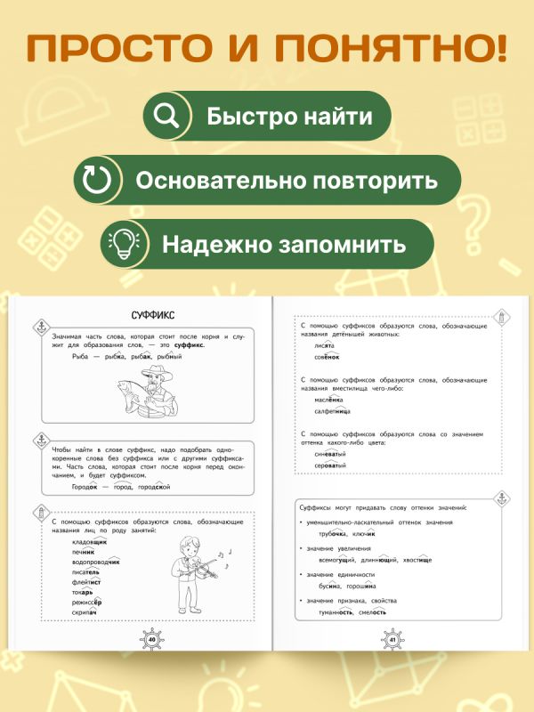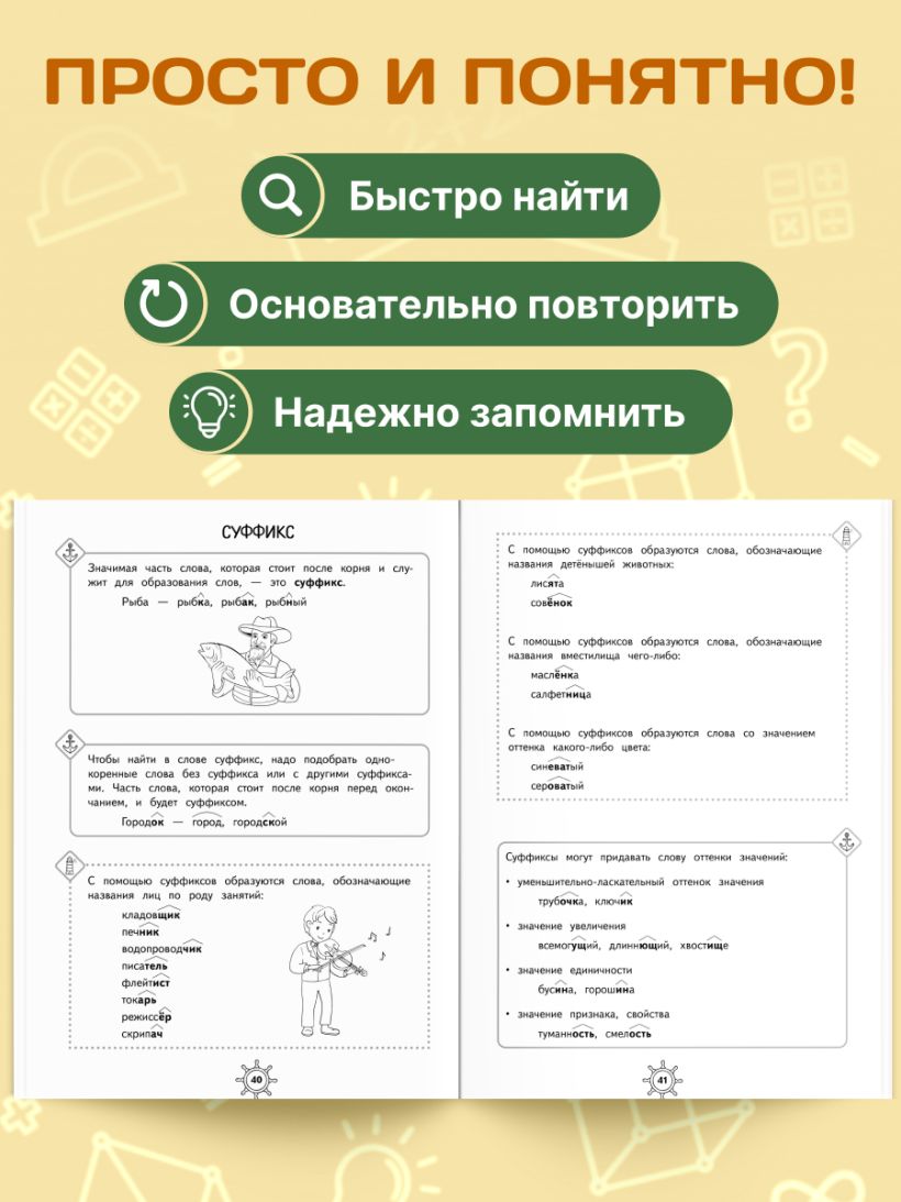 Карманный справочник по русскому языку содержит все темы, проверяемые ЕГЭ-2026 и ОГЭ-2026. Суперкомпактный формат, который помещается на ладони, даст возможность повторить необходимый материал в любое время в любом месте. Информация за 5, 6, 7, 8, 9, 10, 11 классы школьной программы структурирована и представлена понятным языком. Вы быстро найдете ответы на все интересующие вас вопросы по разделам: • «Фонетика» • «Лексика и фразеология» • «Морфемика и словообразование» • «Грамматика. Морфология» • «Грамматика. Синтаксис» • «Орфография» • «Пунктуация» • «Речь» • «Языковые нормы» Пособие поможет в подготовке к ЕГЭ, ОГЭ и ВПР, а также урокам, контрольным и самостоятельным работам и другим экзаменам. Книгу удобно брать с собой и использовать при необходимости. Шпаргалка выручит вас в моменты, когда будет так нужна! Успех в образовании доступен всем!