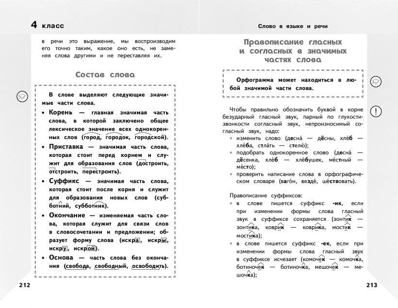 Современный справочник для учеников начальной школы прост и функционален. Весь материал по русскому языку 1—4 классов представлен в виде таблиц, схем, правил и примеров. Темы следуют друг за другом в том же порядке, что и в школьных учебниках. Правила и определения даны кратко и понятно, что облегчает запоминание. Пособие разработано в полном соответствии с требованиями ФГОС начального общего образования.