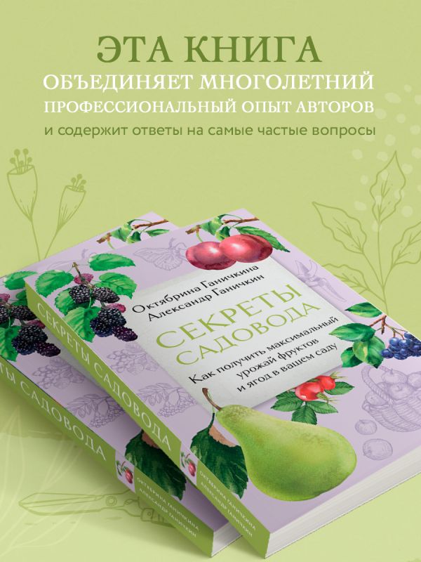 Октябрина Ганичкина — кандидат сельскохозяйственных наук, постоянная ведущая рубрик по приусадебному хозяйству в популярных телепередачах. Александр Ганичкин — дипломированный ученый-агроном. Эта книга объединяет многолетний профессиональный опыт авторов и содержит ответы на самые частые вопросы, которые возникают при выращивании плодовых и ягодных культур. Вы найдете информацию о самых плодоносящих сортах, посадке и пересадке, прививке, обрезке, формировке, подготовке сада к зиме, а главное — о безопасных и современных средствах защиты от вредителей и болезней.