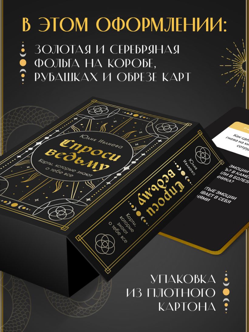 Подарочная колода «Спроси ведьму» от Юлии Ивлиевой — это ключ к разгадке тайн, источник вдохновения и мощный инструмент для самопознания.