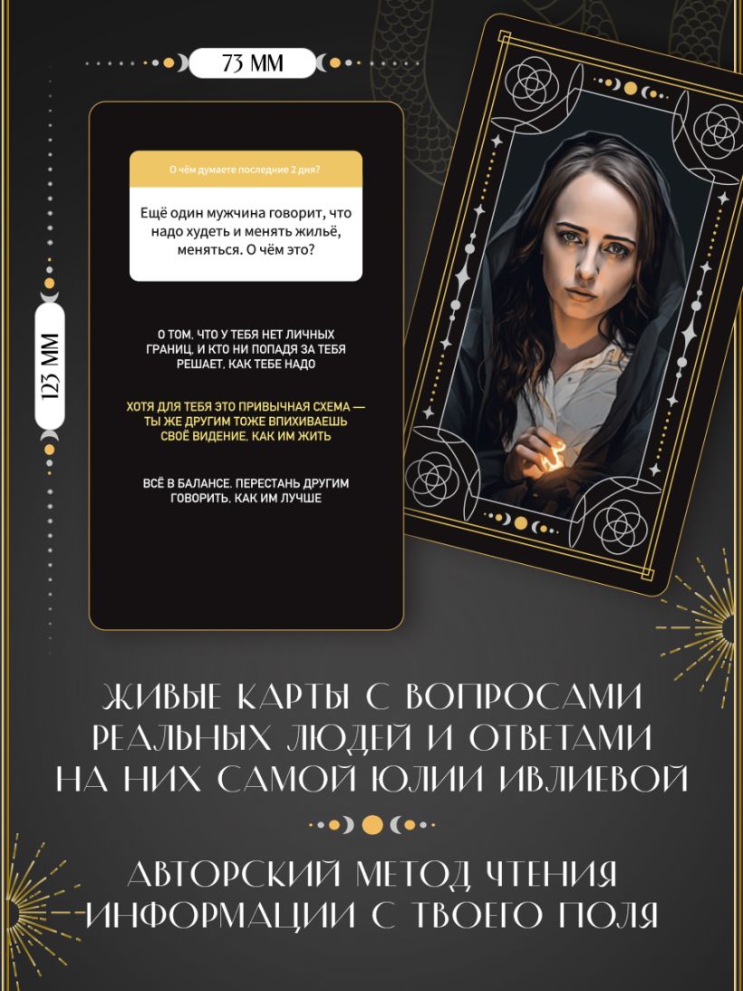 Эти карты — живые. Живые вопросы и ответы на них. И эти вопросы Юлии Ивлиевой в течение двух лет задавали реальные люди в социальной сети. А она передавала ответы.