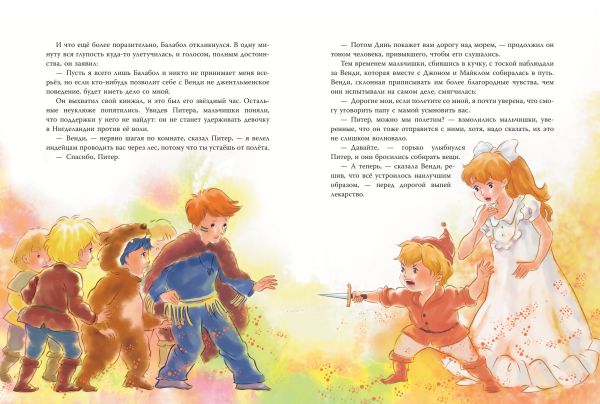 Шотландский писатель Джеймс Мэтью Барри придумал удивительного героя — мальчика, который никогда не повзрослеет. Отважный и решительный Питер Пэн собирает на волшебном острове Нигделандия компанию сверстников и придумывает для них увлекательные приключения. В динамичном сюжете сменяют друг друга знакомство с русалками, помощь индейцам, сражения с пиратами и главная битва — со злодеем капитаном Крюком. Несомненно, из этой схватки Питер Пэн выйдет победителем!