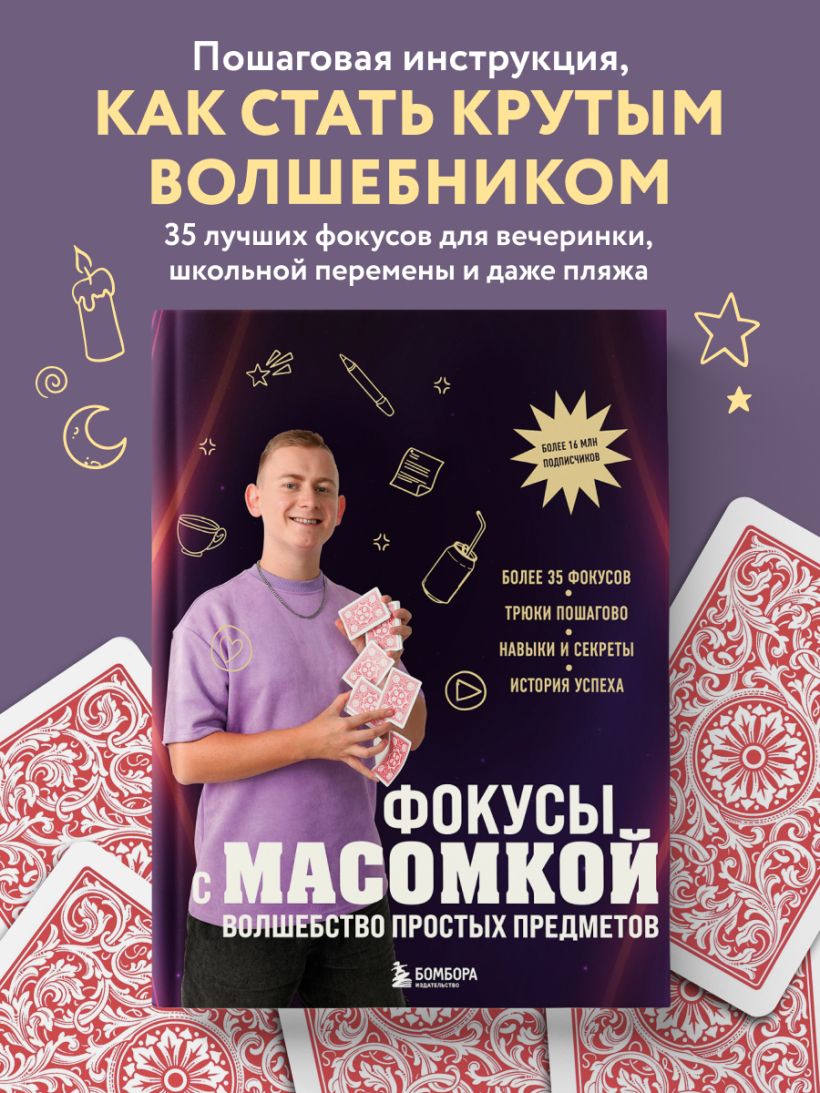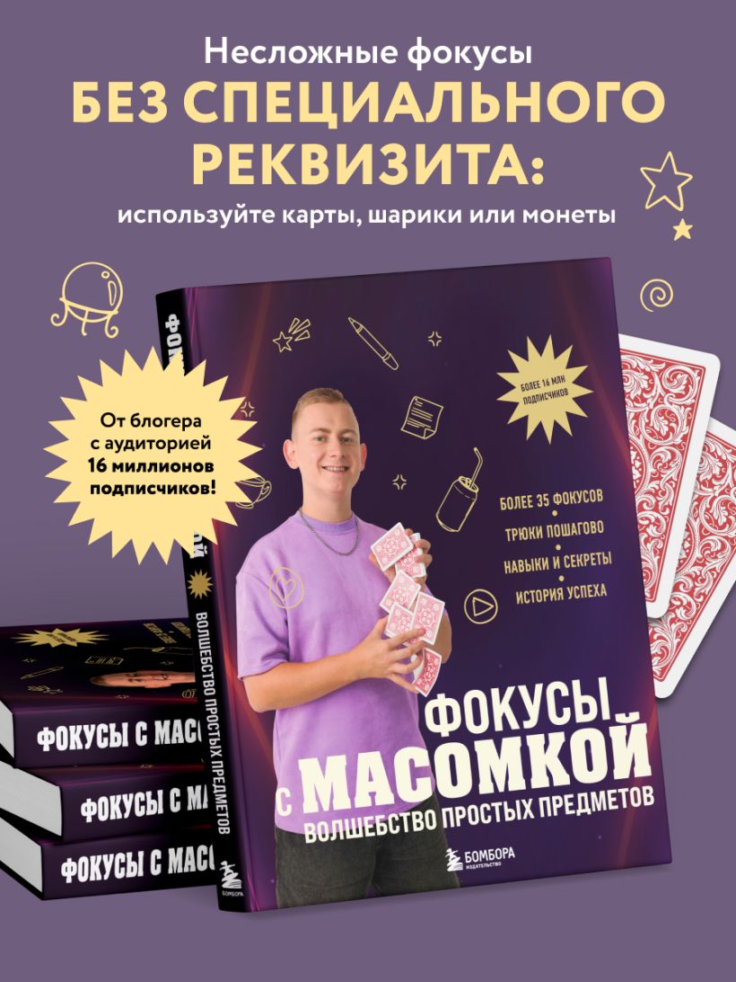 Популярный российский фокусник-блогер Максим Виноградов — МАСОМКА делится секретами исполнения веселых и удивительных номеров. В книге он рассказывает, как достиг таких замечательных результатов, и делится секретами исполнения своих фокусов. От простых до более сложных.