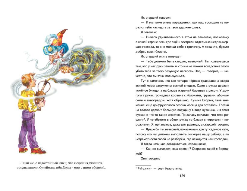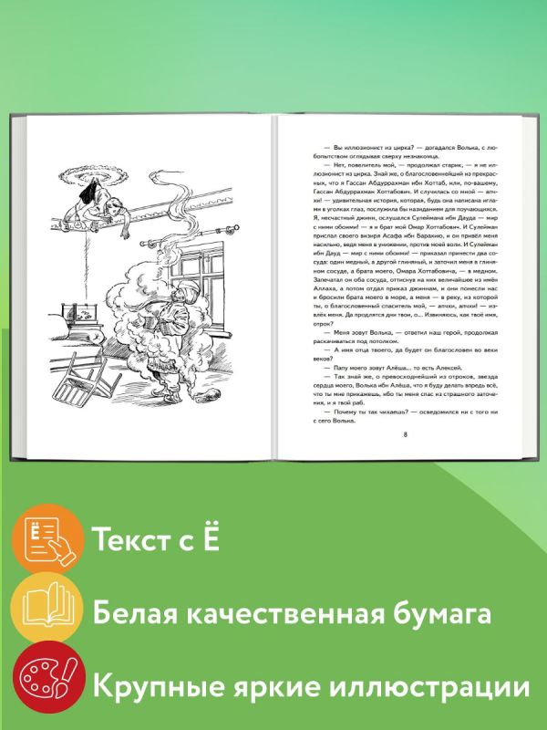 Волька Костыльков и не предполагал, к чему может привести обычное купание в речке: таинственный сосуд, необычный старичок с волшебной бородой, полёт на ковре-самолёте и многое-многое другое. Захватывающие приключения, добрый юмор и курьёзные происшествия ждут на страницах чудесной сказки, которая научит честности, справедливости, заботе о близких, верности и настоящей дружбе.