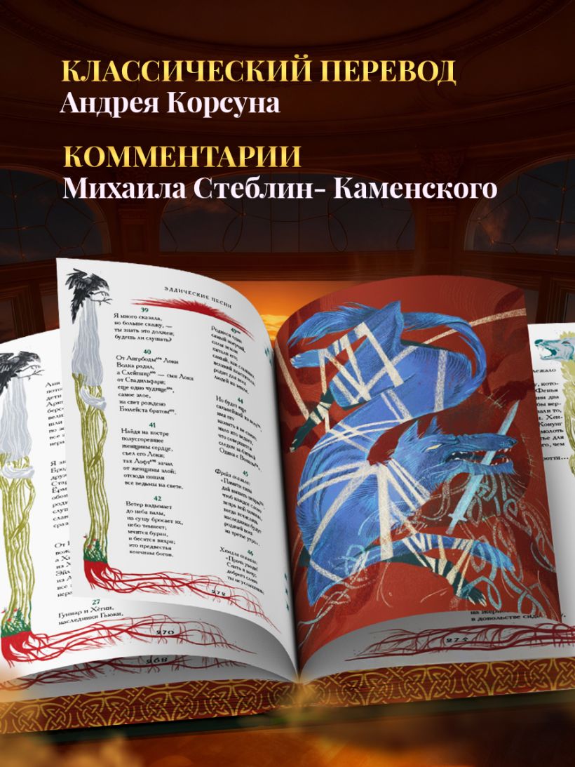 Текст публикуется в классическом переводе Андрея Корсуна и снабжен комментариями выдающегося скандинависта Михаила Стеблин-Каменского, дающими ключи к тексту. Открывает издание вступительная статья историка-медиевиста Арона Гуревича об образах, стиле и источниках «Старшей Эдды».