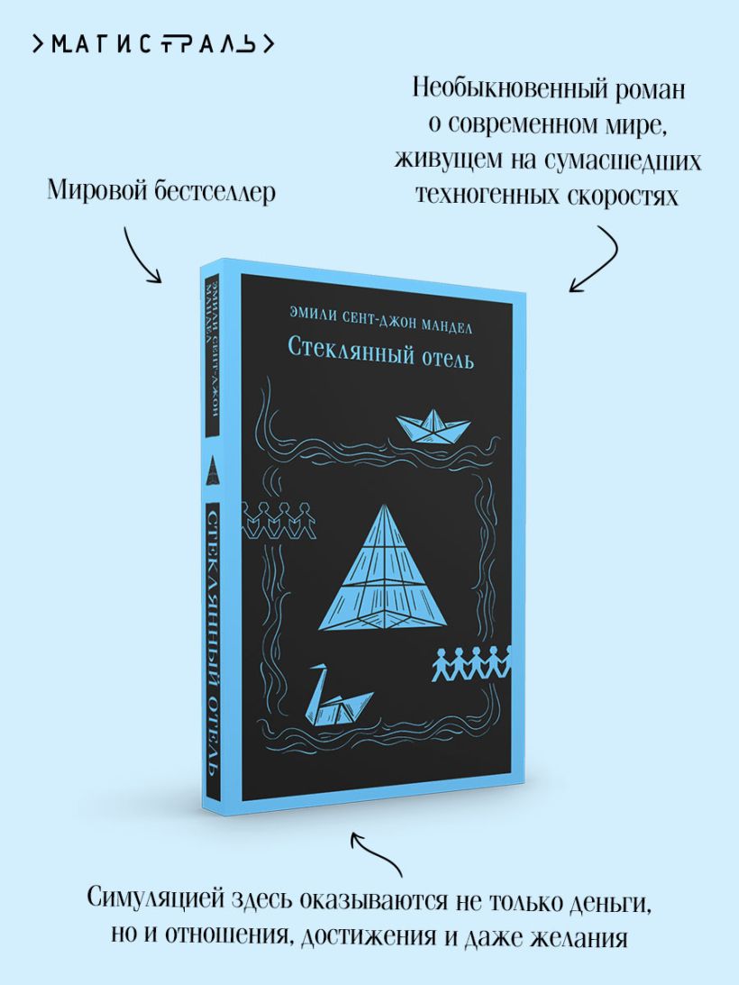 «Стеклянный отель» — необыкновенный роман о современном мире, живущем на сумасшедших техногенных скоростях, оплетенном замысловатой паутиной финансовых потоков, биржевых котировок и теневых схем. Мандел рисует его иллюзорным, как элегантная громада элитного отеля в канадской глуши, и жестоким, как надпись, сделанная на панорамном окне его сверкающего лобби: «Почему бы тебе не поесть битого стекла?» Предназначена ли она Винсент — загадочной молодой девушке, в прошлом которой тоже есть стекло с надписью, а скоро появятся и тайны посерьезнее? Или, может, дело в Поле, брате Винсент, которого тянет вниз невысказанная вина и зависимость от наркотиков? Или же адресат — Джонатан Алкайтис, таинственный владелец отеля и руководитель на редкость прибыльного инвестиционного фонда, у которого в руках так много денег и власти?
