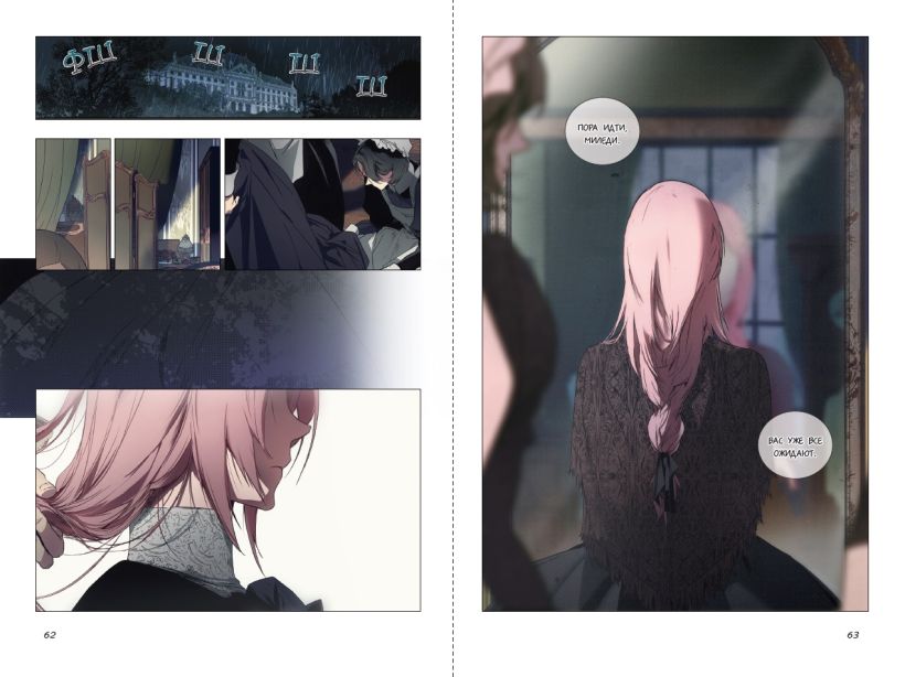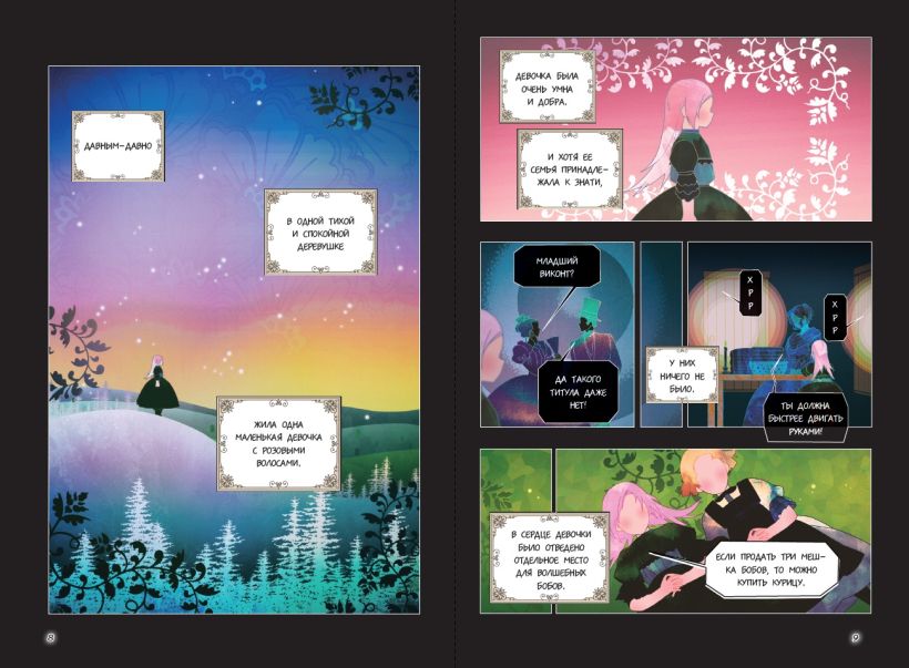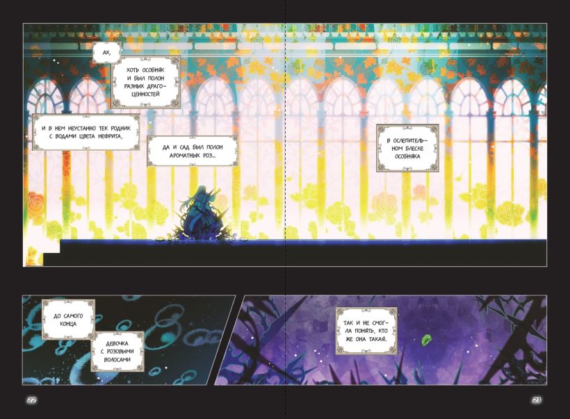 Невероятной красоты рисовка, в которой уделяется особое внимание деталям, оригинальная верстка блока текста, обложка с тиснением фольгой.