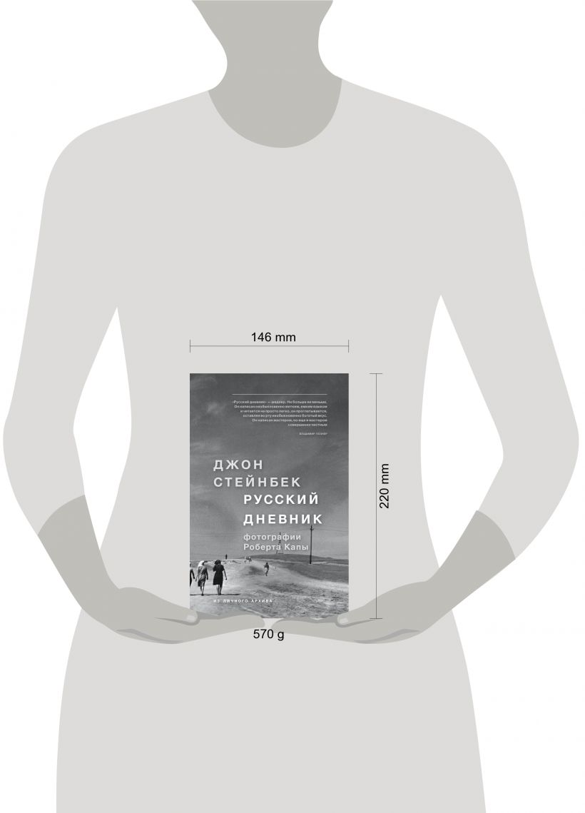 "Русский дневник" лауреата Пулитцеровской премии писателя Джона Стейнбека и известного военного фотографа Роберта Капы — это классика репортажа и путевых заметок. Сорокадневная поездка двух мастеров по Советскому Союзу в 1947 году была экспедицией любопытных. Капа и Стейнбек "хотели запечатлеть все, на что упадет глаз, и соорудить из наблюдений и размышлений некую структуру, которая послужила бы моделью наблюдаемой реальности". Структура, которую они выбрали для своей книги — а на самом деле доминирующая метафора "Русского дневника", — это портрет Советского Союза. Портрет в рамке. Они увидели и с неравнодушием запечатлели на бумаге и на пленке то, что Стейнбек назвал "большой другой стороной — частной жизнью русских людей". "Русский дневник" и поныне остается замечательным мемуарным и уникальным историческим документом.