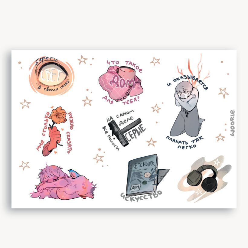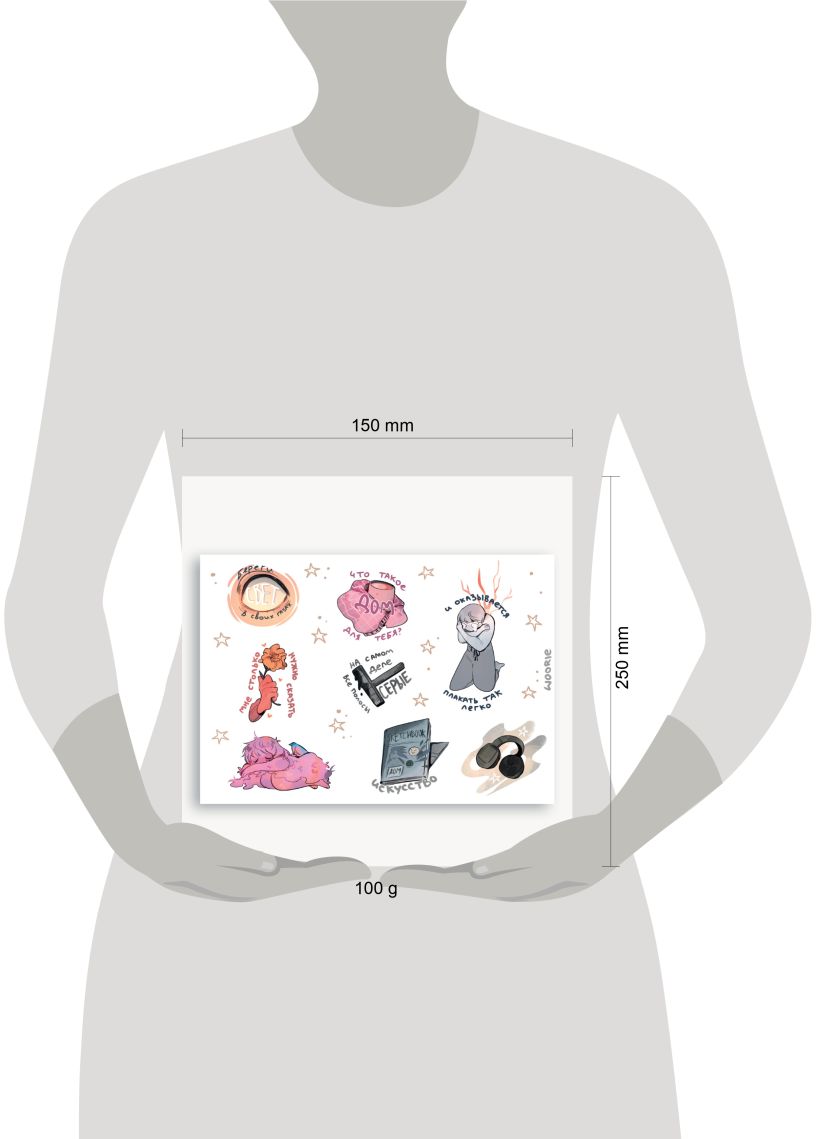 Побалуй своего внутреннего ребенка! «Укуси меня пчела!», «Зови меня "хозяин"», «Я не море… меня не волнует» — эти и другие цитаты зададут стиль вашей комнате, рабочему месту и планеру с дедлайнами. В наборе 2 листа с наклейками (всего 19 штук). На одном Смешарики в классическом своем великолепии. На втором Смешарики примерили на себя новые образы. Размер листа — А5 (148х210 мм). Наклейки не помнутся при доставке — мы положили в упаковку плотную картонку. Стикерпарк изготовлен из качественных материалов, благодаря чему наклейки долго не выцветут. Самоклеящаяся пленка не рвется, а наклейки легко отделяются от фона. Набор наклеек — это отличный подарок себе, а также сестрам, братьям и детям на Новый год или на день рождения. Собери всю коллекцию «Смешариков»: «Смешарики. 3D-стикеры на телефон» «Смешарики. Наклейки» (24 наклейки на 2 листах) «Смешарики. Переводные татуировки» «Смешарики. Блокнот шалость удалась!» (формат А5, 128 стр., с цитатами и картинками) Детский календарь настенный на 2026 год. «Смешарики» (290х290 мм)