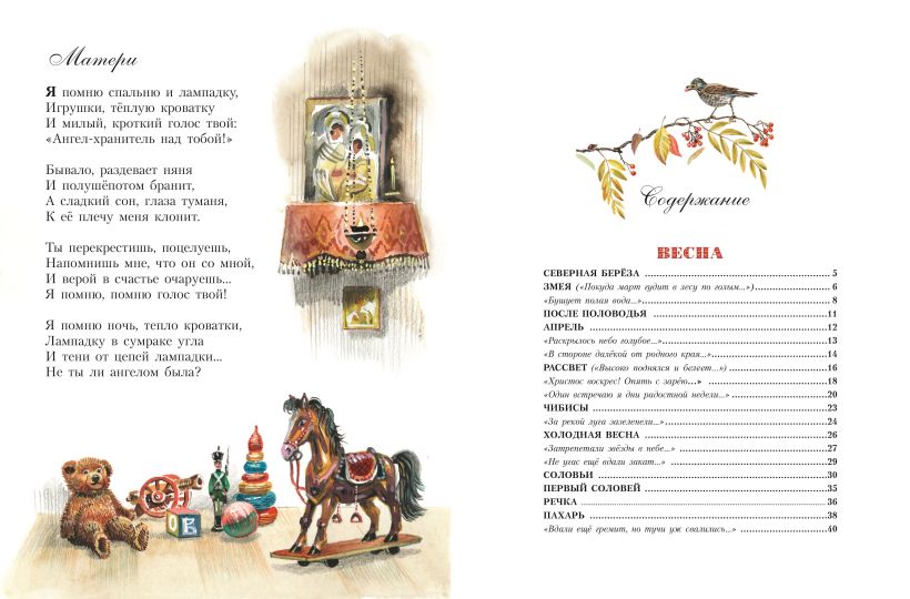 В книгу вошли 83 стихотворения известного русского писателя и поэта, лауреата Нобелевской премии по литературе (1933) Ивана Алексеевича Бунина. Пейзажная лирика выдающегося мастера слова открывает юным читателям удивительную красоту родной земли в круговороте времён года. Первая весенняя оттепель и осенние бури, подёрнутые молодой зелёной листвой леса и знойный июльский полдень, «лес, точно терем расписной» и звенящая морозная зимняя ночь — всё это проходит перед глазами и надолго остаётся в памяти. Александр Блок писал: «Так знать и любить природу, как умеет Бунин, мало кто умеет. Благодаря этой любви, поэт смотрит зорко и далеко, и красочные и звуковые его впечатления богаты».
