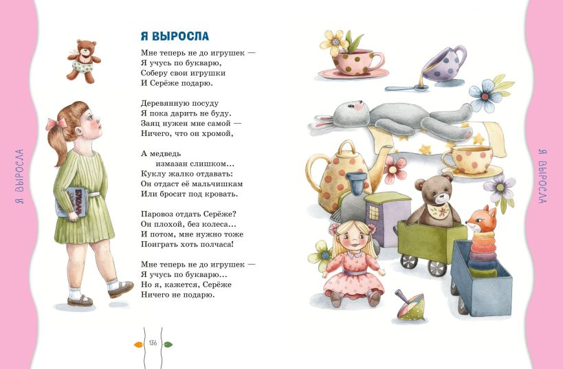 Стихотворения выдающейся поэтессы и писательницы Агнии Львовны Барто — это неотъемлемая часть детства нескольких поколений. Звонкие и простые строчки сопровождают юных читателей с самого раннего возраста и до школьных дней. Едва научившись говорить, малыши уже повторяют за мамами и папами: «Уронили мишку на пол…», «Идёт бычок, качается…», «Наша Таня громко плачет». Подрастая, дети знакомятся с Милочкой-копилочкой, учатся прыгать через верёвочку вместе с Лидочкой, узнают, как надо поступать в том или ином случае, — и всё это благодаря ясным и легко запоминающимся стихам Агнии Барто.