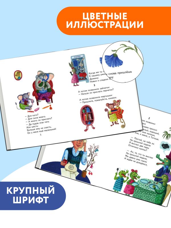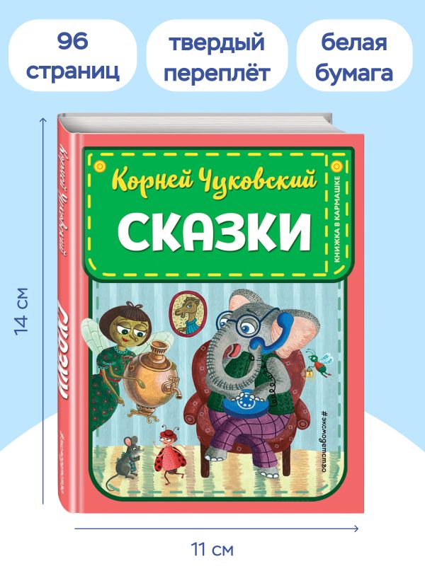 6 самых известных сказок для малышей Корнея Чуковского! 96 страниц, удобный карманный формат, твёрдый переплёт и яркие иллюстрации.