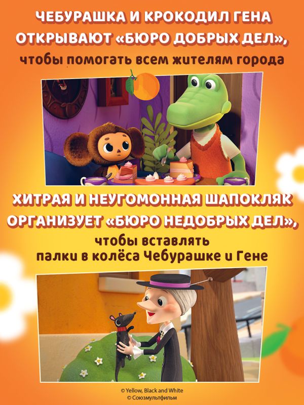 Чебурашка и крокодил Гена решили, что доброты много не бывает, и открыли Бюро Добрых Дел! Но коварная Шапокляк не дремлет — она тут же основала свое Бюро Недобрых Дел. Что задумала хитрая старушка вместе с крыской Лариской? Читайте в новых приключениях!