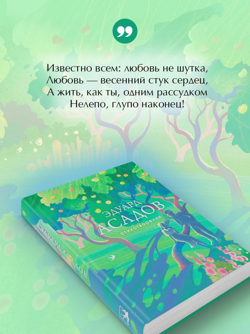Эдуард Асадов (1923—2004) — один из самых читаемых советских поэтов-лириков. Многие начинавшие писать стихи делали это «по Асадову», ведь он умел говорить с людьми на языке привычном и понятном им и очень хорошо представлял себе своего читателя: действительно наивного, не всегда умеющего выразить свои чувства и изложить мысли, но искреннего. Потому-то стихи Эдуарда Асадова в основном сюжетны: в их основе истории, которые любой неискушённый человек может счесть своими собственными.