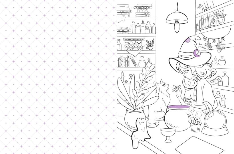 Вы верите в магию? Тогда скорее открывайте эту стильную раскраску и загляните в гости к очаровательной чародейке! Эта книга обязательно понравится всем тем, кто хочет погрузиться в атмосферу уюта и волшебства, и станет замечательным подарком для девочек!