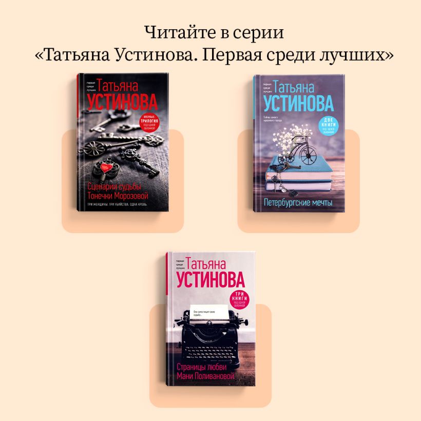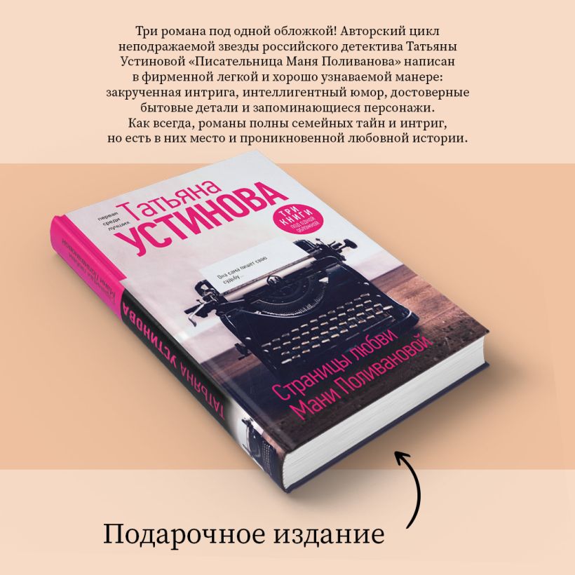 Три романа под одной обложкой! Авторский цикл неподражаемой звезды российского детектива Татьяны Устиновой «Писательница Маня Поливанова» написан в фирменной легкой и хорошо узнаваемой манере: закрученная интрига, интеллигентный юмор, достоверные бытовые детали и запоминающиеся персонажи. Как всегда, романы полны семейных тайн и интриг, но есть в них место и проникновенной любовной истории.