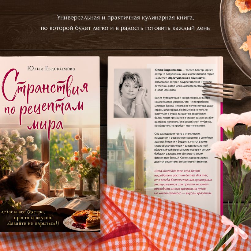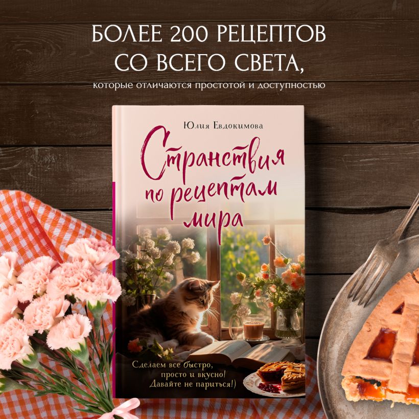 По рецептам Юлии Евдокимовой люди учатся готовить, а потом присылают ей в чат горячие благодарности, что все получается очень вкусным! Юлия решила, что пришла пора написать книгу рецептов, простых и аппетитных, с доступными в любом магазине продуктами, простыми в приготовлении рецептами и малыми временными затратами. Конечно, без историй и иллюстраций она не могла обойтись, но в отличие от 14 других ее книг, в новой — более 200 рецептов. Варианты со всего мира омлетов и фрикаделек, блюд из картофеля, кабачков и огурцов; пасты и ризотто, бутерброды, сэндвичи и сконы, чайные и кофейные напитки. Все получается, и без заморочки!