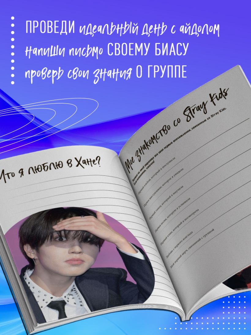 Если бы тебе предложили провести один день с одним из участников Stray Kids, кого бы ты выбрала? Этот новый яркий фанбук позволит помечтать и приблизиться к любимой группе! Помимо фактов, дискографии и информации о каждом участнике, ты найдешь здесь страницы-слоты для написания писем музыкантам, а также новые интересные задания!