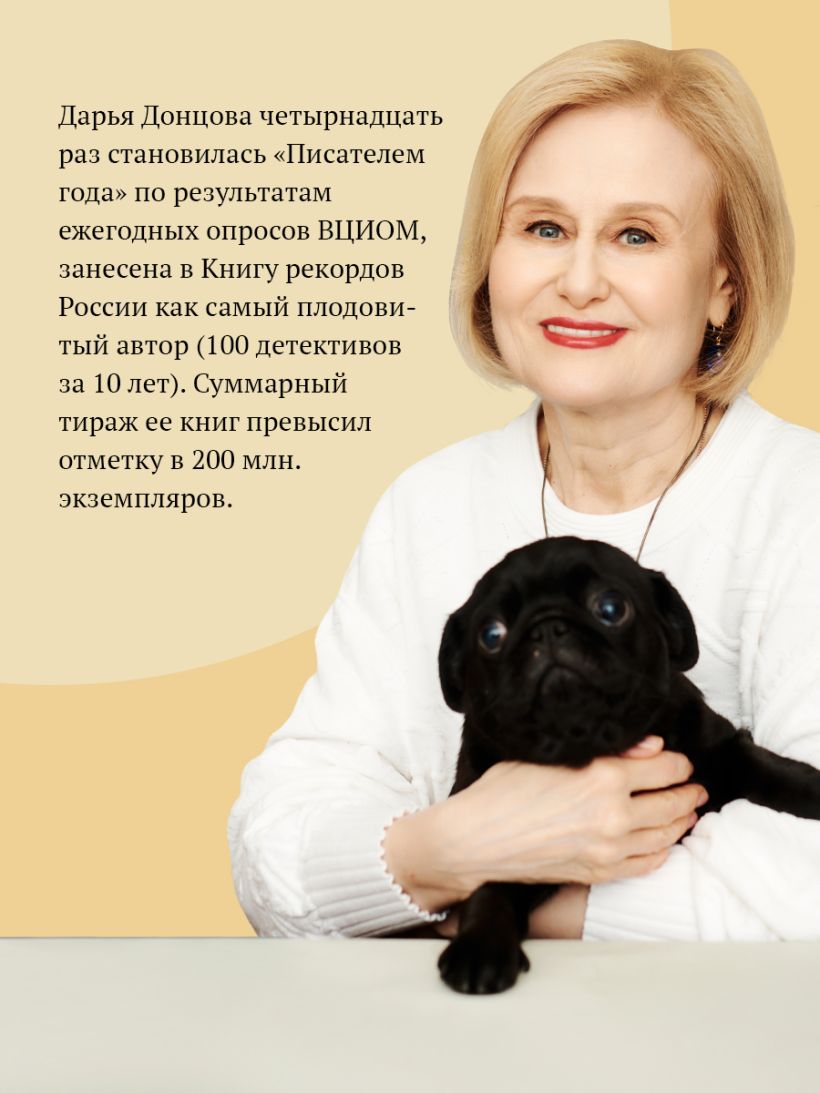 Дарья Донцова — самый популярный и востребованный автор в нашей стране, любимица миллионов читателей. В России продано более 200 миллионов экземпляров ее книг.