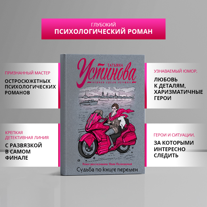 Новый остросюжетный роман прославленной звезды российского детектива Татьяны Устиновой «Судьба по книге перемен» написан в фирменной легкой и хорошо узнаваемой манере: закрученная интрига, интеллигентный юмор, достоверные бытовые детали и запоминающиеся персонажи. Как всегда, роман полон семейных тайн и интриг, есть в нем место и проникновенной любовной истории.