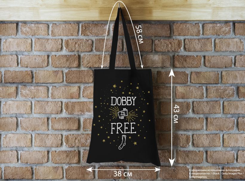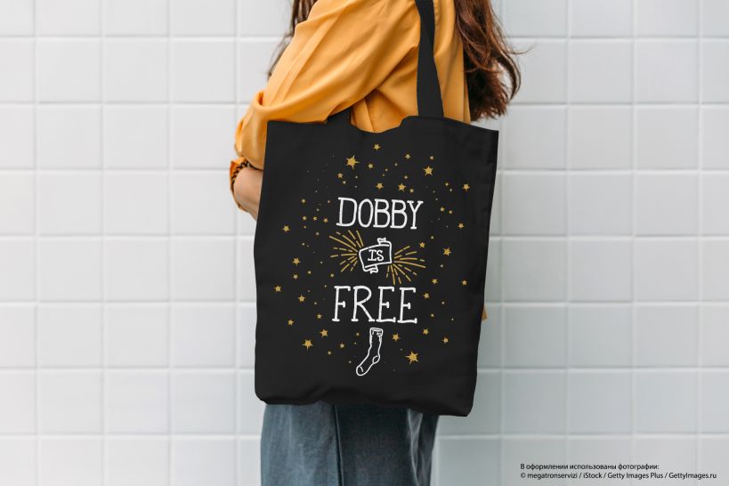 Сумка. Добби свободен! (черная, 38х43 см, длина ручек 58 см)