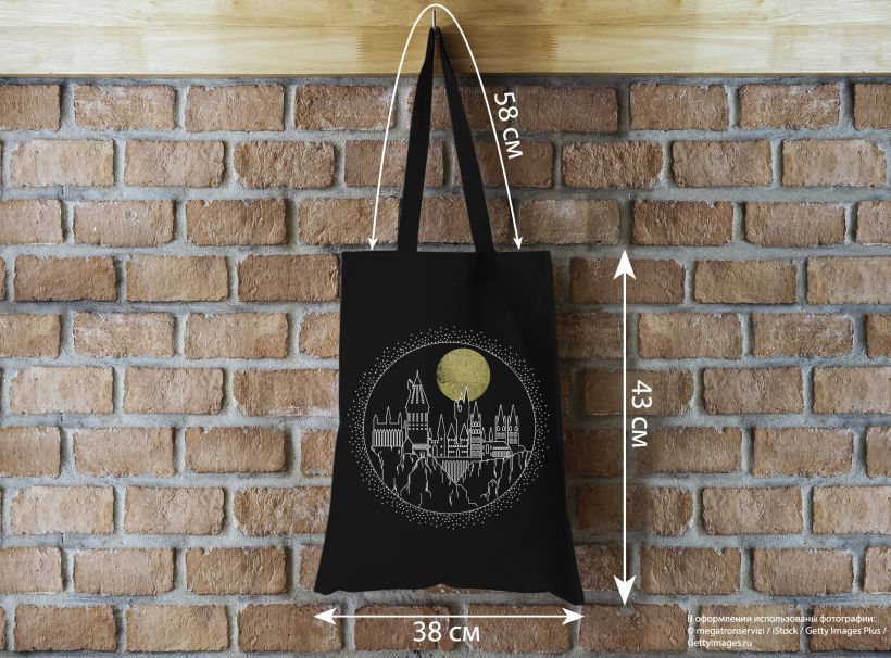 Сумка. Хогвартс (черная, 38х43 см, длина ручек 58 см)