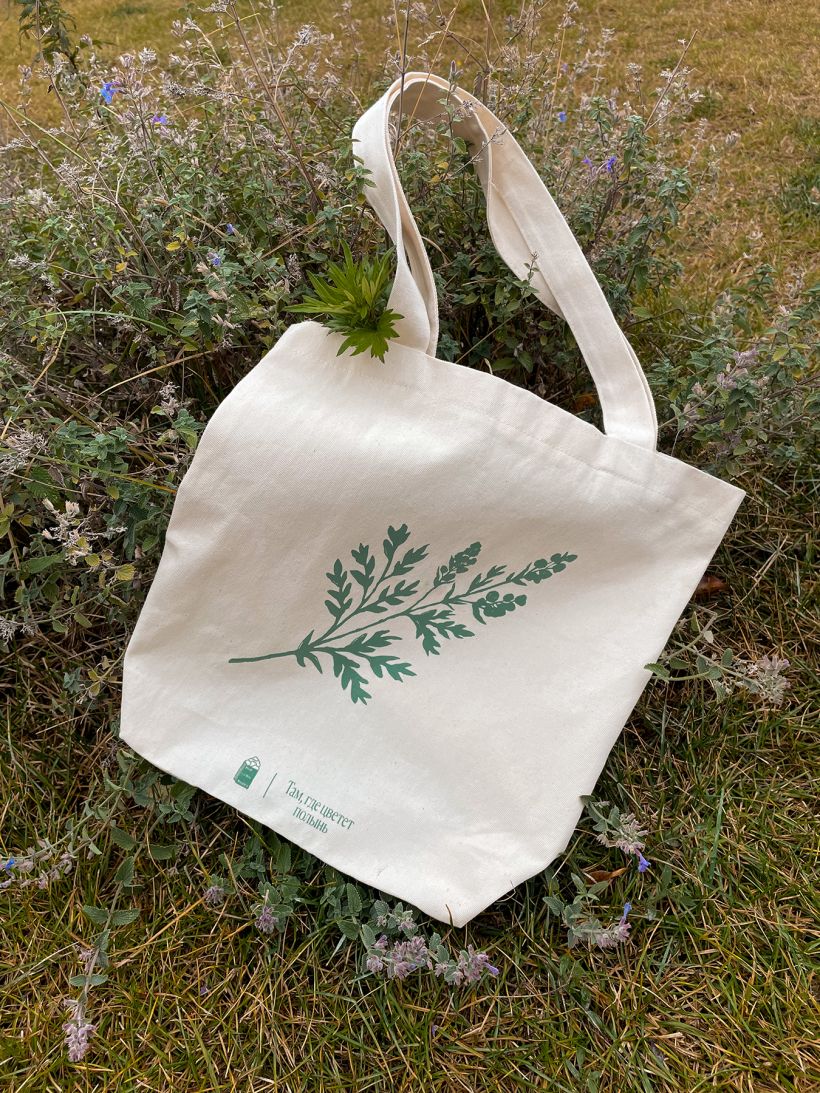 Хлопковая сумка-шоппер «Там, где цветет полынь» от издательства Popcorn Books с прямоугольным дном. Вмещает формат А4. Сумка выдерживает вес до 10 кг. Размер: 36 × 37 см, длина ручек — 35 см.