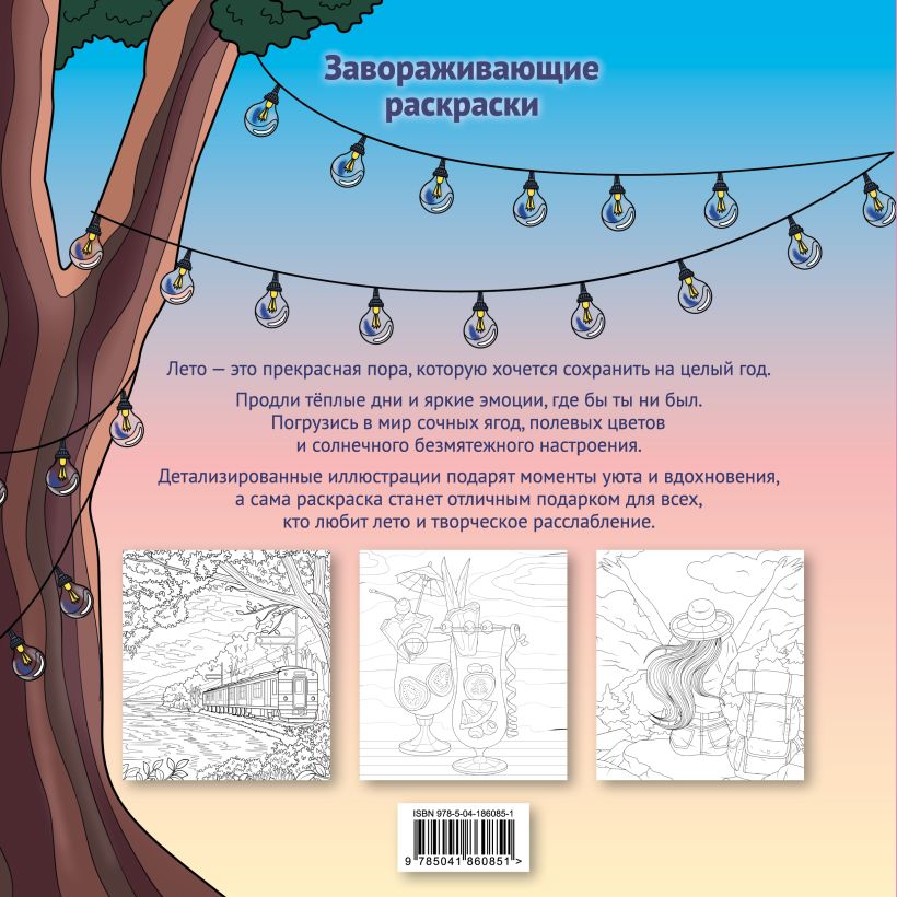 Лето — прекрасная пора, которую всегда так хочется задержать подольше. Теперь это возможно с нашей новой раскраской! Устраивайтесь поудобнее и начинайте раскрашивать красивые детализированные иллюстрации — вы сразу почувствуете запах спелых ягод и фруктов, аромат полевых цветов и теплоту летнего ветерка. Все рисунки односторонние, поэтому раскрашивать их можно, не боясь испортить картину на обороте. Раскраска также станет отличным подарком на любой праздник любителям раскрасок-антистресс и всем тем, кто обожает жаркое время года.
