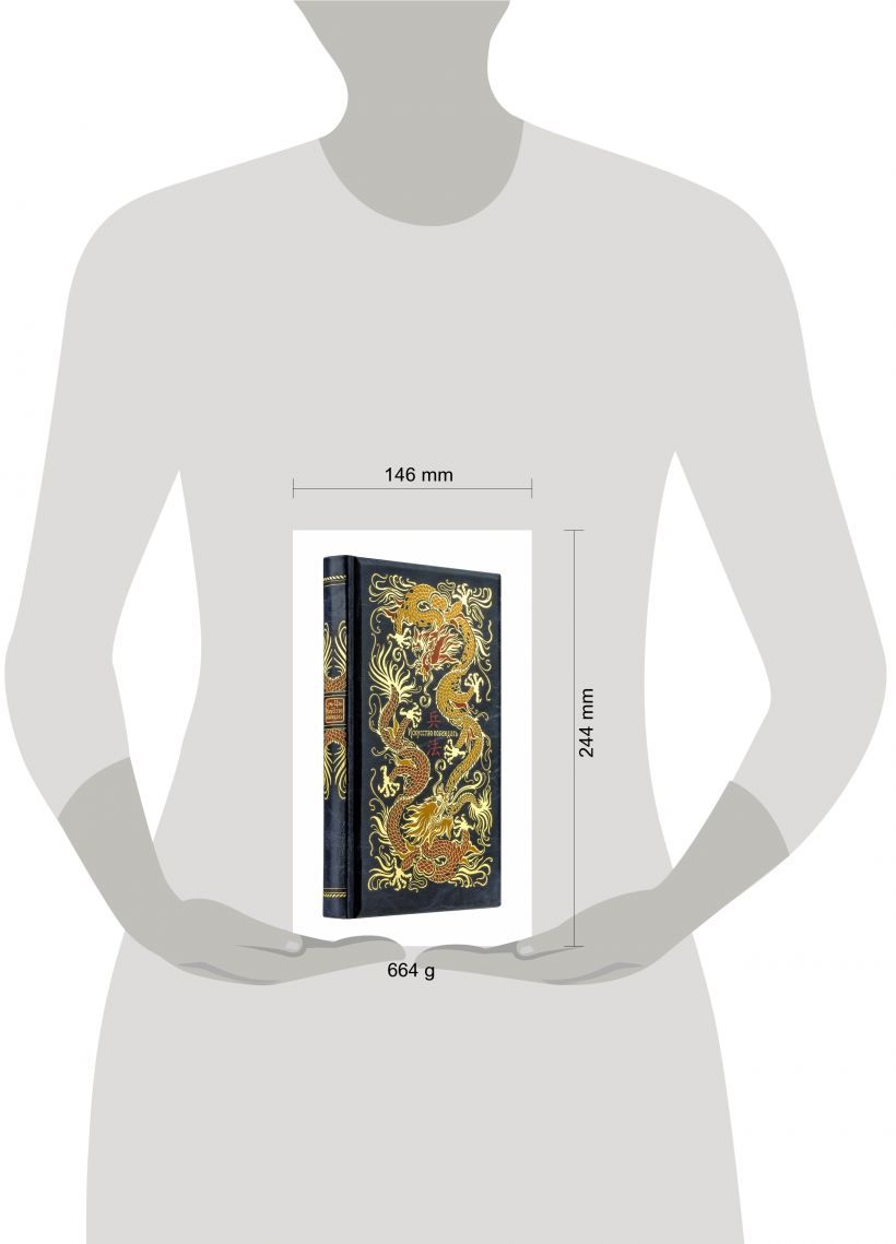 Подарочное издание в изящном коллекционном переплете ручной работы, созданном по старинной технологии 19 века в лучших традициях книжного искусства из натуральной кожи цвета бордо. Книга отпечатана на плотной бумаге, содержит множество графичкских иллюстраций. Тиснение рельефное, золотое, натуральным красным пигментом и медью. Корешок кругленый. Обрез окрашен. Переплет оформлен по авторским рисункам, выполненным специально для данного издания, в оформлении использованы изобразительные мотивы, традиционные для культуры Средневекового Китая. Форзацы из фактурной бумаги, каптал и ляссе из шелка. К книге прилагается красочный сертификат, отпечатанный на бумаге «верже», подтверждающий лимитированный тираж и качество переплета ручной работы. Книга в кожаном переплете ручной работы послужит нескольким поколениям читателей.