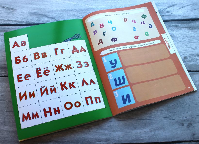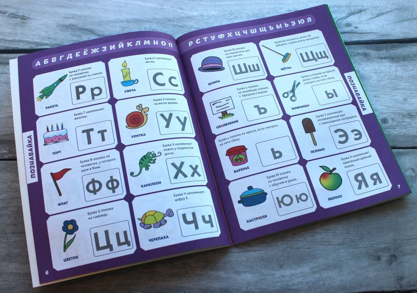 Книги этой серии впервые сочетают в себе познавательный и развлекательный элементы, а также наклейки и раздаточный материал. 10 самых разных составляющих: знакомство с буквами и загадки про них, весёлые задания, урок рисования, раскраски, игра-бродилка, иллюстрированная сказка.