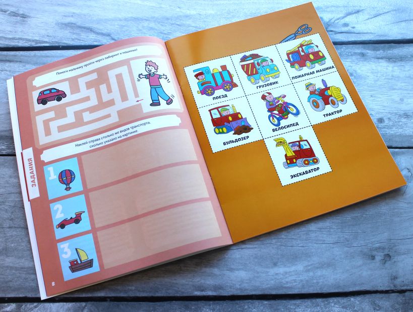 Наклейки пригодятся для выполнения заданий, а разрезные картонные пазл и карточки с изображением транспорта можно использовать отдельно от книги. Занимайтесь вместе с нашей «Занимайкой»!