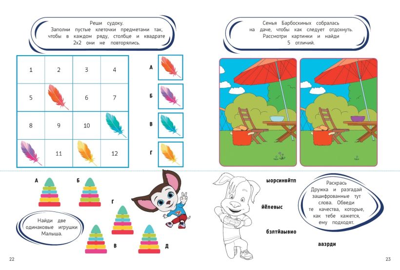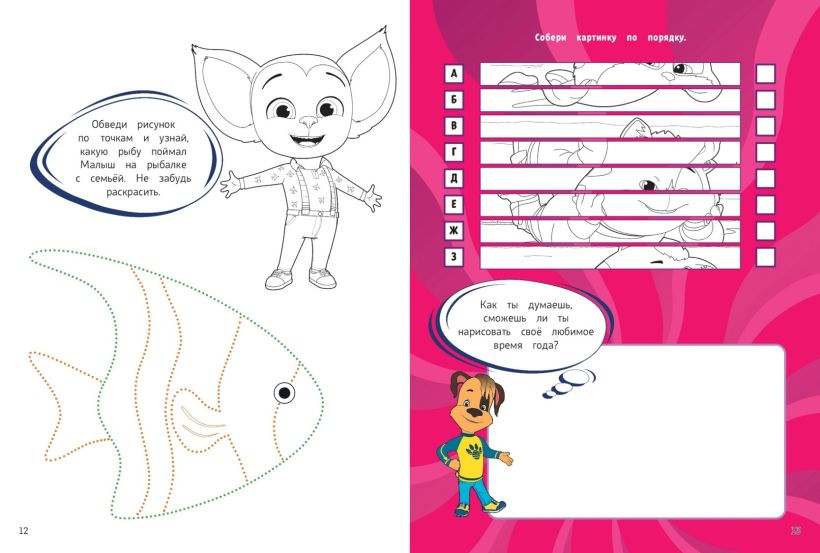 Скорее открывайте раскраску и погружайтесь в необычный мир Барбоскиных! Вас ждут игры, лабиринты, поиск отличий и много-много раскрасок. Ну и какое же путешествие без суперпомощников?